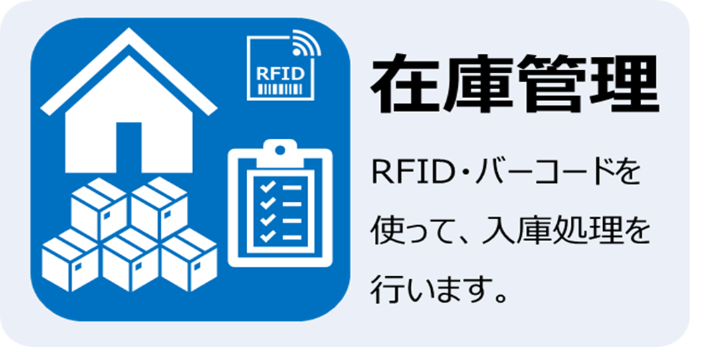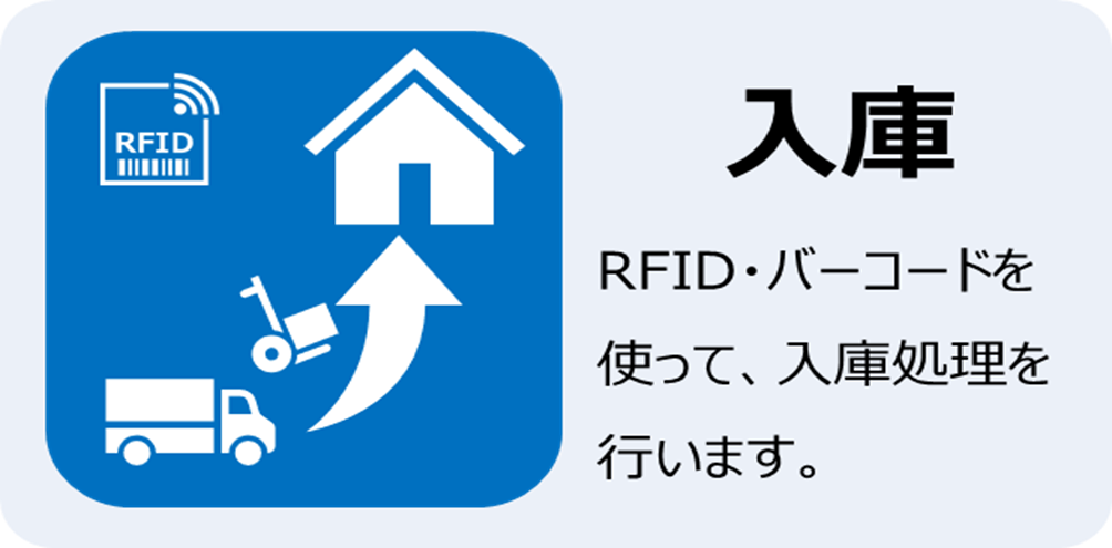 RFIDリーダ、バーコードリーダを使用して、物品の入庫状況を物品マスターと照合、記録します