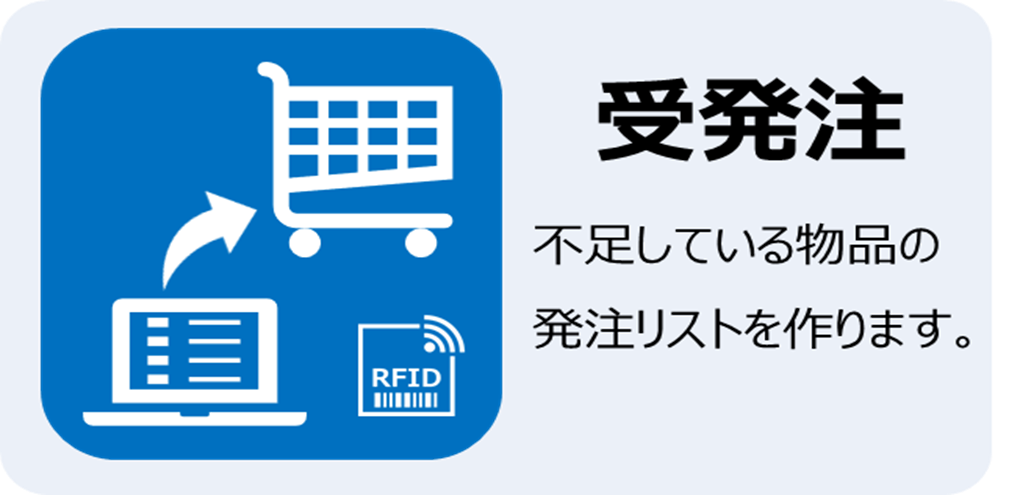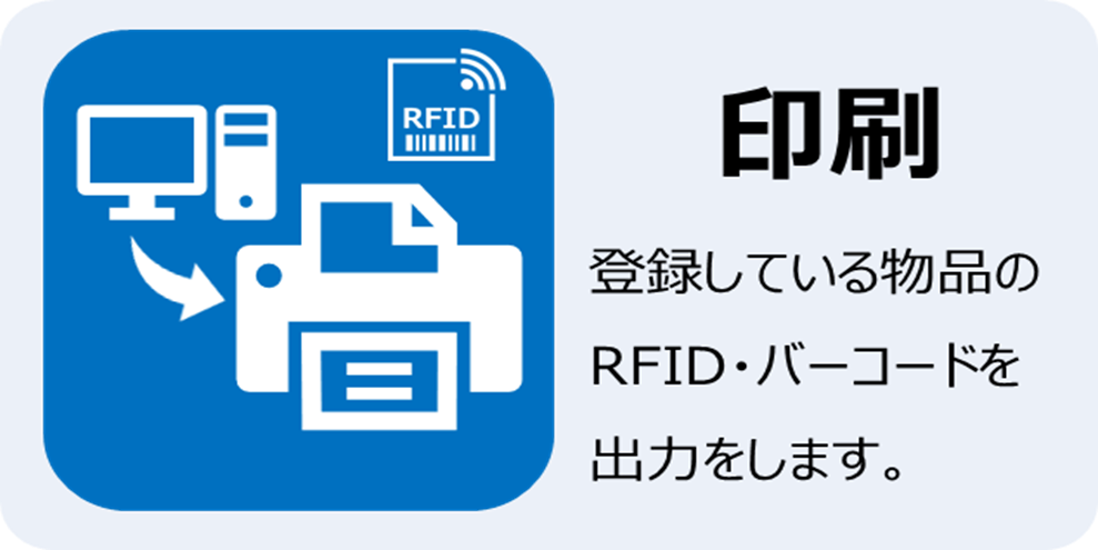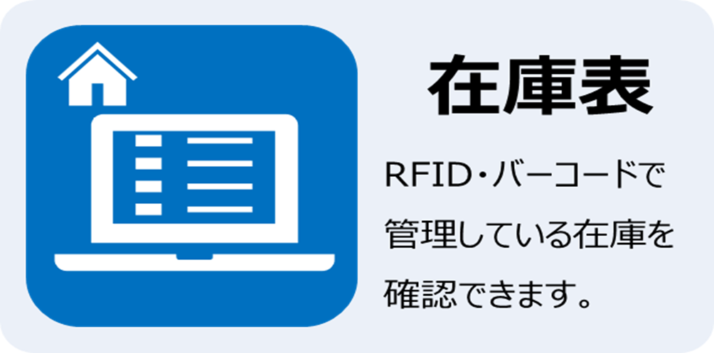 RFIDリーダ、バーコードリーダを使用し、物品マスタに記録されている在庫情報と現物の有無を照合、状況を記録します